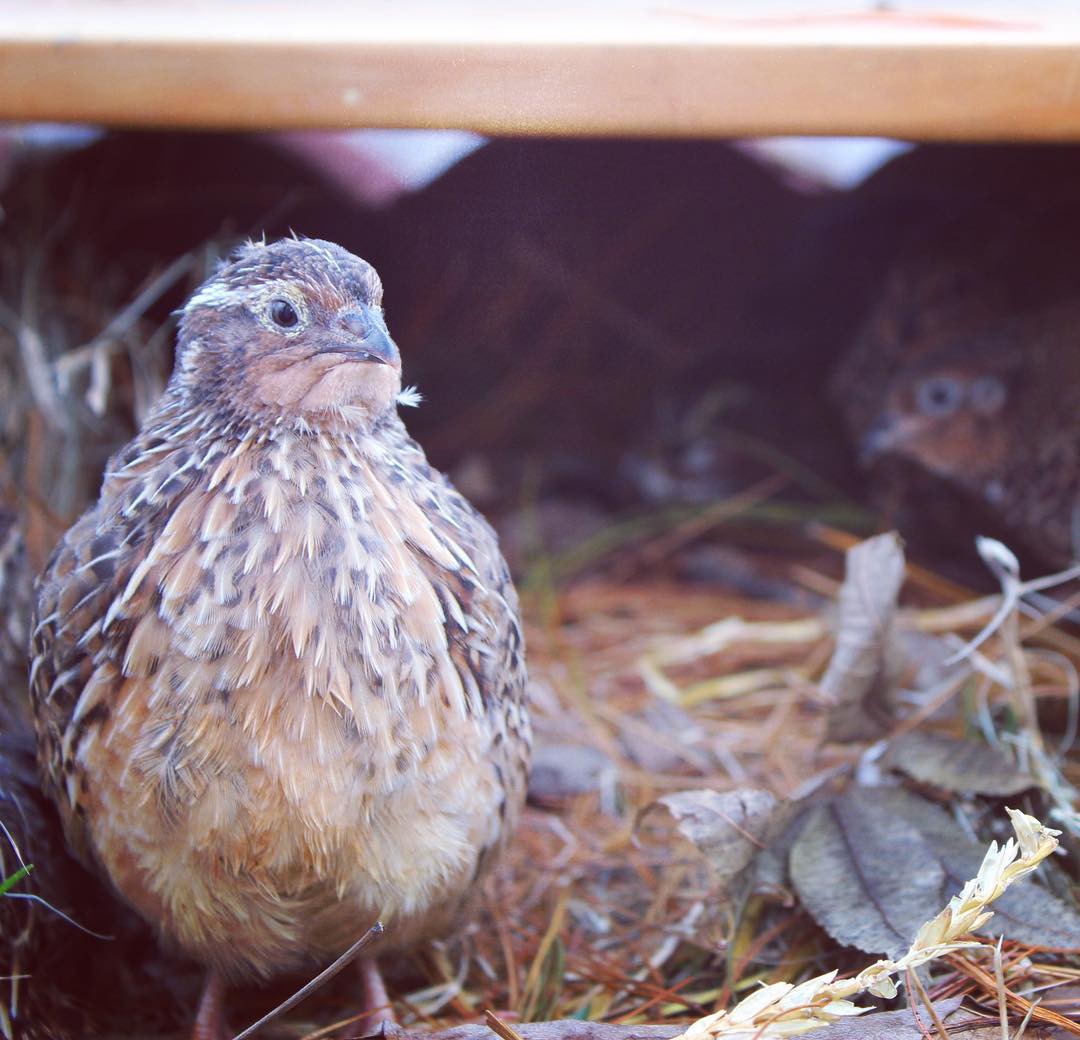 Adult quail are equally busy. They have things to do, and are focused on doing them as quickly and importantly as possible. They pick out bugs from the dirt, stretch and crow, hop and make little jumps around their area, they really are quite busy all the time. And watch out when they get new bedding- it’s all hands on deck to get these pine needles in order and settled! They complete all their tasks with the utmost urgency and importance.